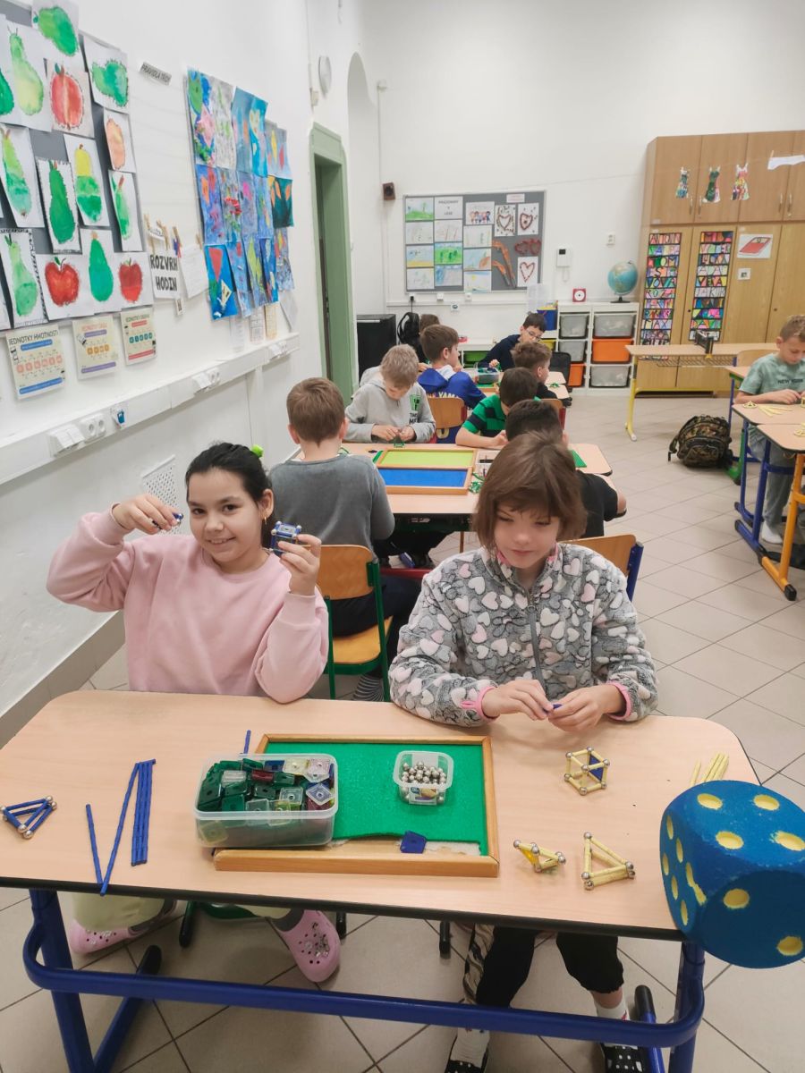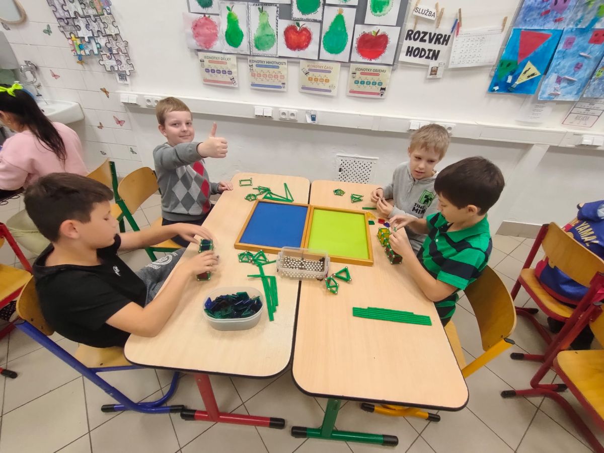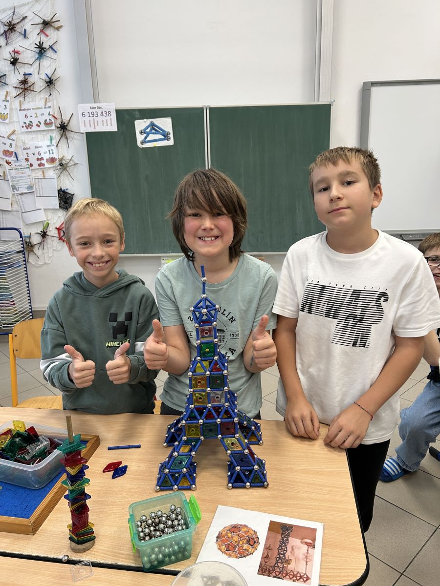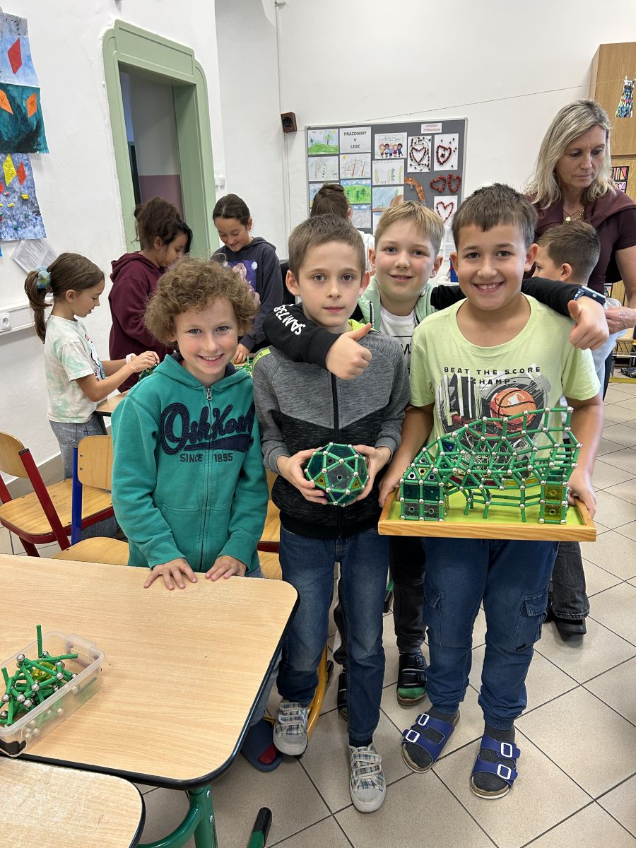 Ve čtvrtek se naši čtvrťáci zúčastnili zajímavé akce Geomag na cestách, která do školy přinesla nejen zábavu, ale i poznávání. Žáci měli možnost pracovat s magnetickou stavebnicí Geomag, která rozvíjí tvořivost, prostorové vnímání i logické myšlení. Během workshopu si mohli vyzkoušet stavění různých konstrukcí, od jednoduchých tvarů až po složité geometrické objekty. Nechyběla ani týmová spolupráce, řešení problémů a hledání nejpevnějších konstrukcí. Čtvrťáci byli nadšeni a do aktivit se zapojili s velkým zaujetím. Děkujeme za inspirativní dopoledne plné magnetické energie!