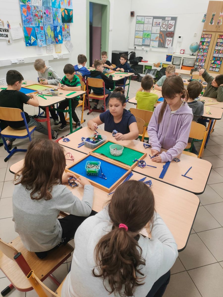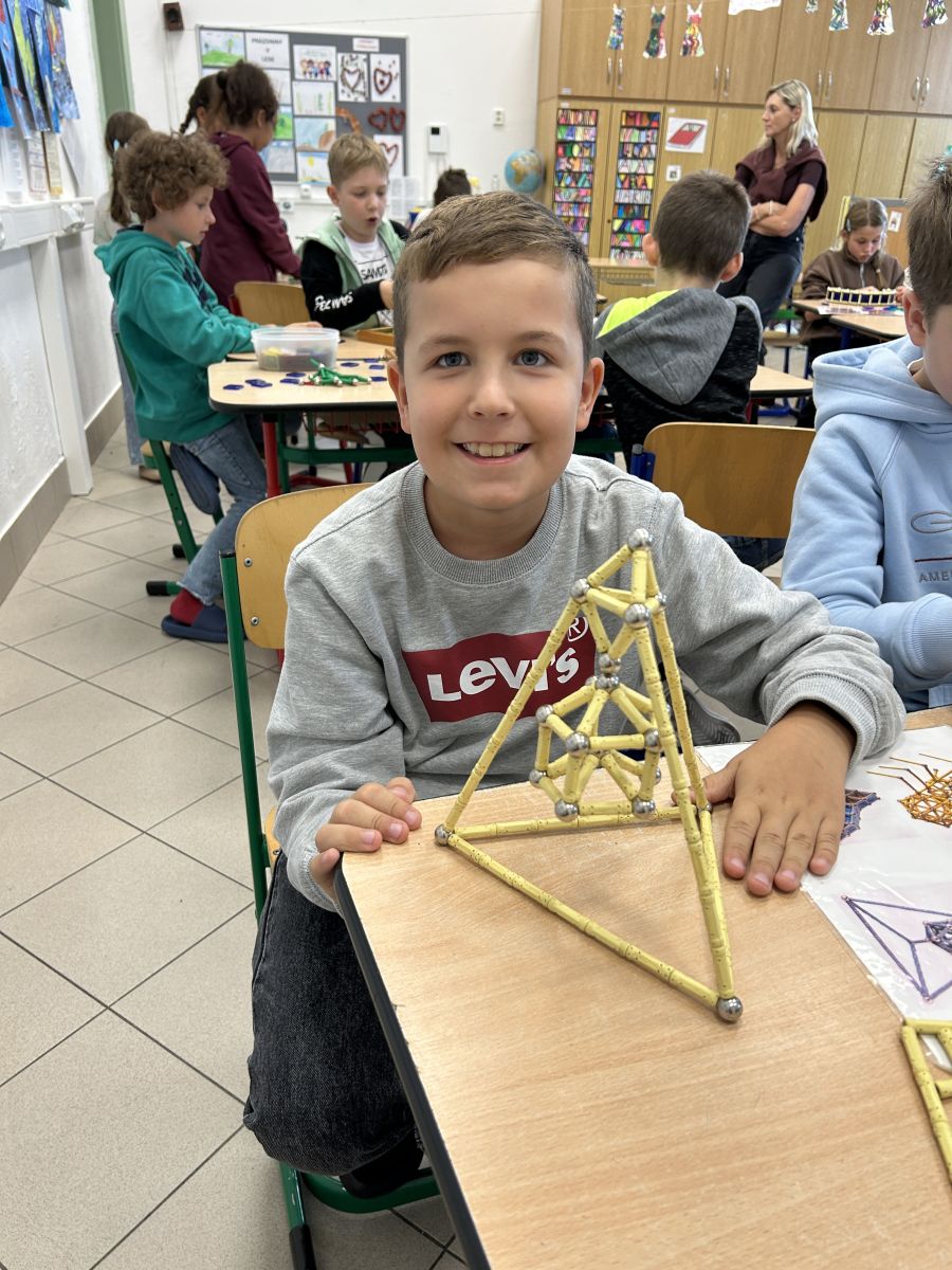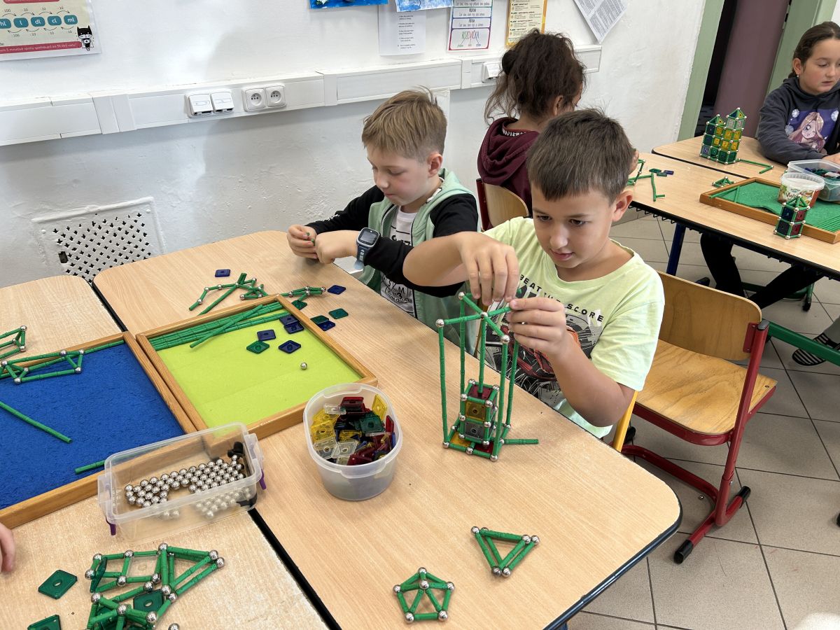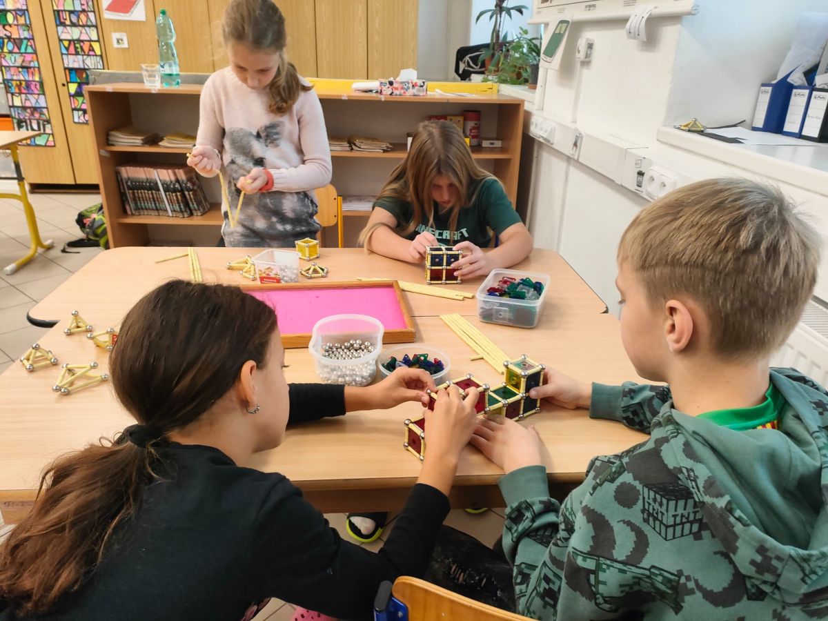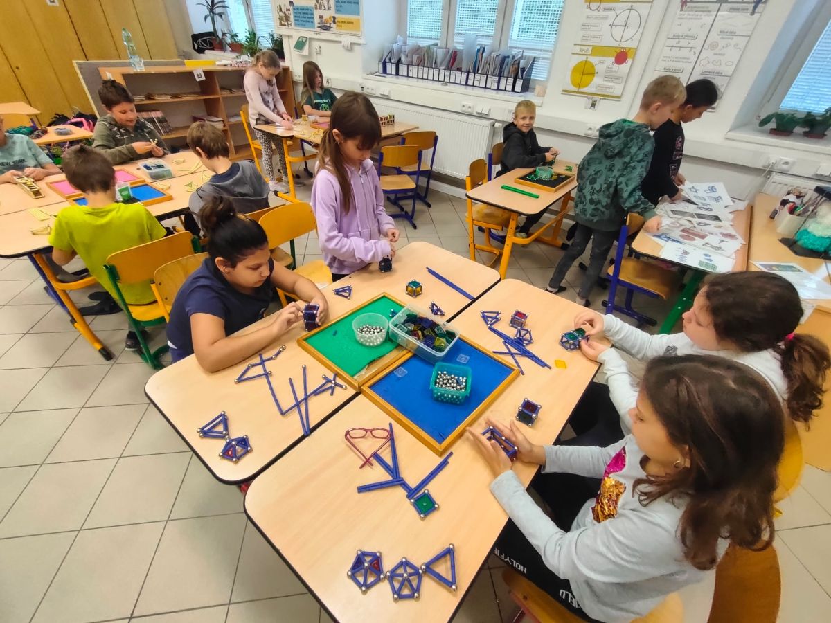 Ve čtvrtek se naši čtvrťáci zúčastnili zajímavé akce Geomag na cestách, která do školy přinesla nejen zábavu, ale i poznávání. Žáci měli možnost pracovat s magnetickou stavebnicí Geomag, která rozvíjí tvořivost, prostorové vnímání i logické myšlení. Během workshopu si mohli vyzkoušet stavění různých konstrukcí, od jednoduchých tvarů až po složité geometrické objekty. Nechyběla ani týmová spolupráce, řešení problémů a hledání nejpevnějších konstrukcí. Čtvrťáci byli nadšeni a do aktivit se zapojili s velkým zaujetím. Děkujeme za inspirativní dopoledne plné magnetické energie!
