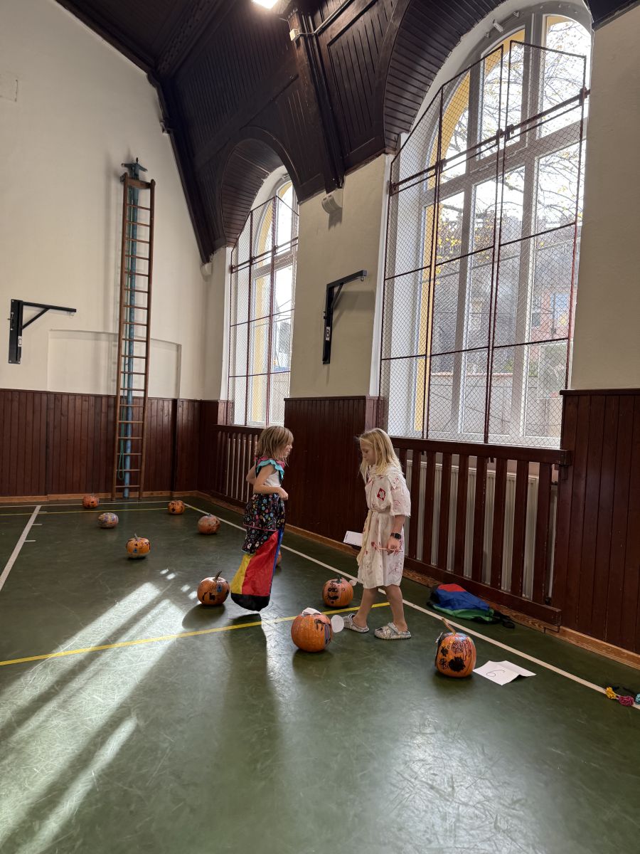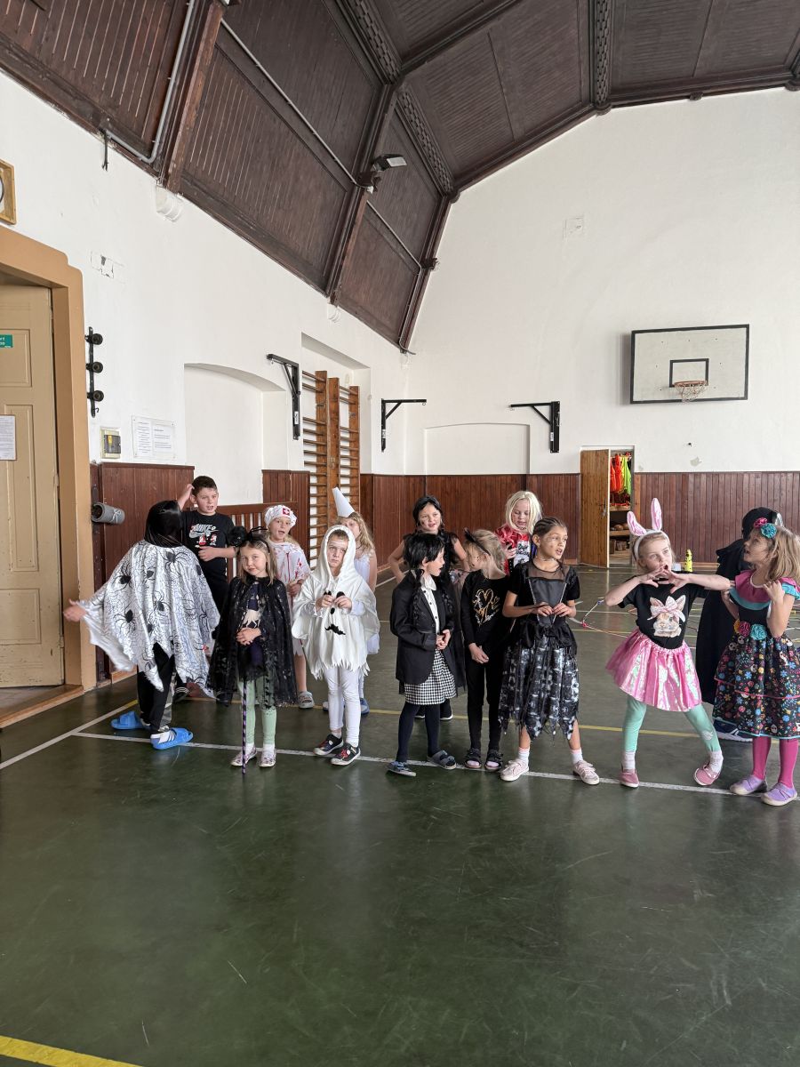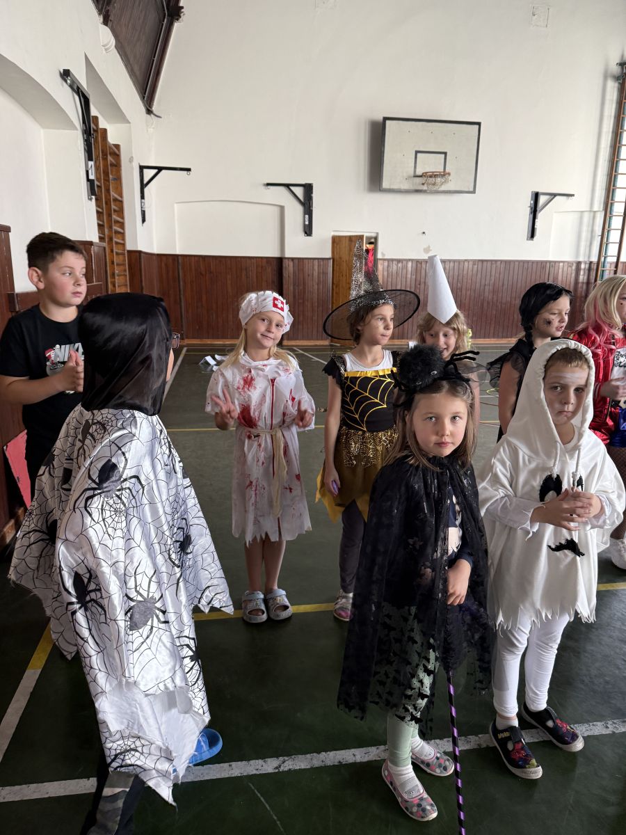 V pátek odpoledne se naše školní družina proměnila v opravdové strašidelné království. Akce se zúčastnily žáci I. B. Tělocvična se hemžila malými čaroději, duchy, netopýry i kostlivci. Děti si mohly vyzkoušet za hudebního doprovodu různé soutěžní disciplíny, jako třeba skákání v pytli mezi slalomem z dýní, hod na dýně, lovení pavouků, strašidelná krabice, foukání duchů a spousta jiných.