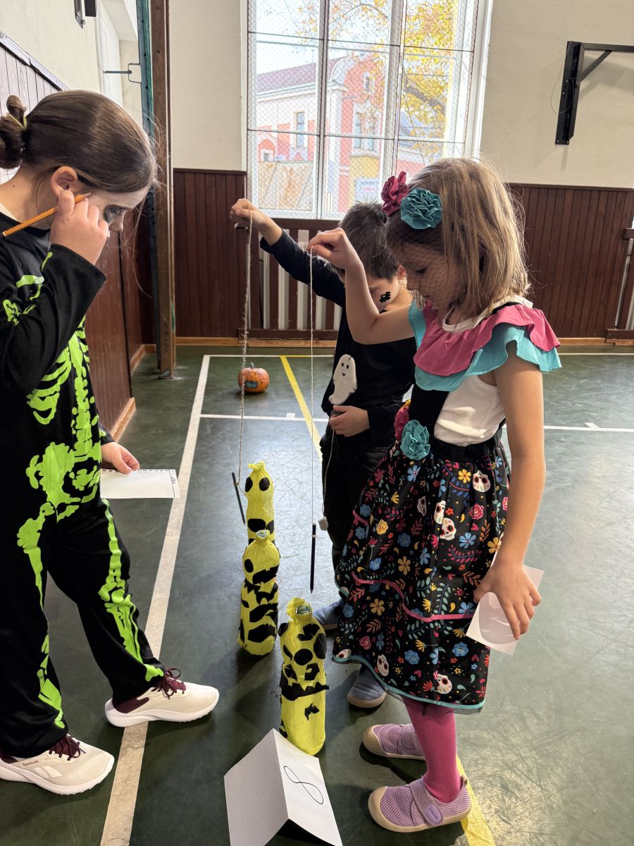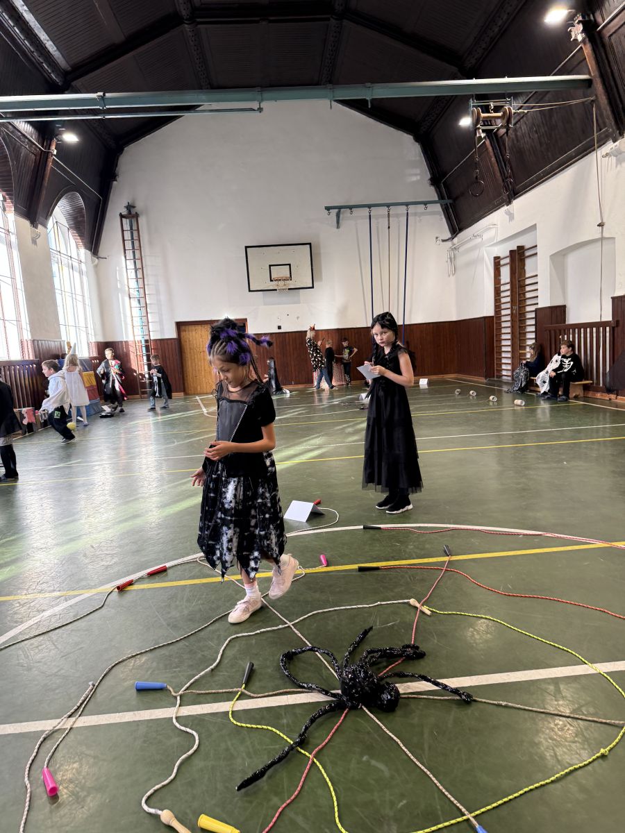 Žáci z III. A se výborně zhostili svých rolí. Pomáhali s disciplínami a starali se o to, aby se naši prvňáčci cítili jako na opravdovém halloweenském dobrodružství. Na závěr nechyběla sladká odměna, společné focení a spousta smíchu.