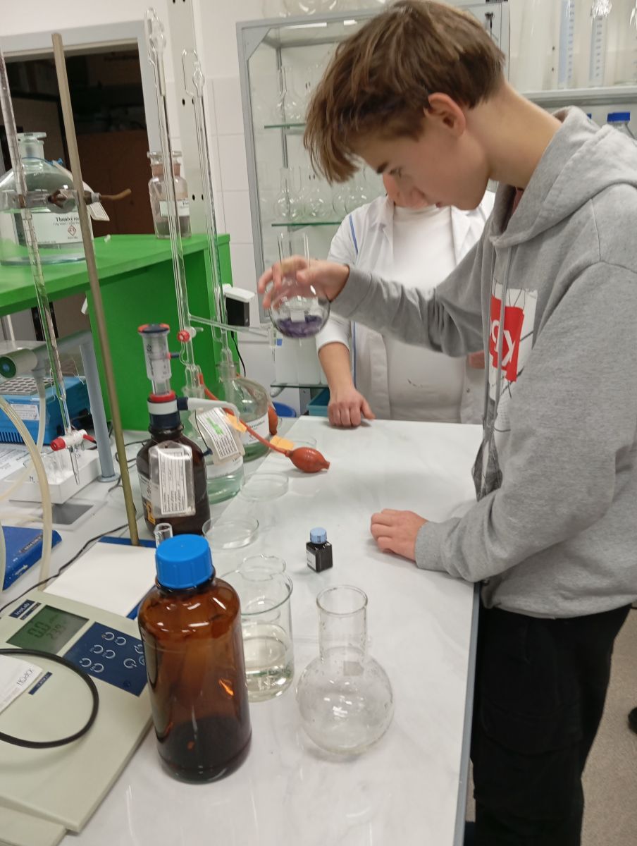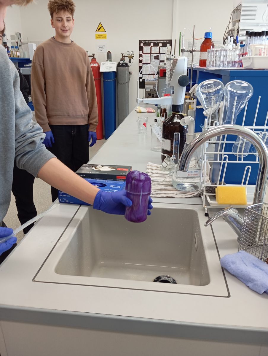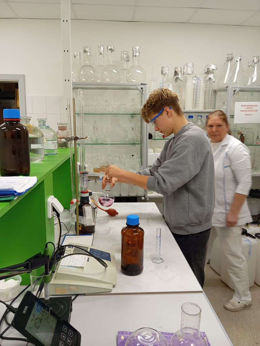 Technologické postupy byly vysvětleny tak, že jim rozuměli i laici. V laboratoři si žáci vyzkoušeli stanovení tvrdosti vody pomocí titrace a paní laborantky jim navíc připravily zajímavý chemický pokus pro zpestření programu. Každý si tak mohl chemii doslova osahat.