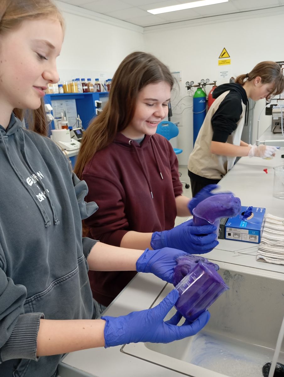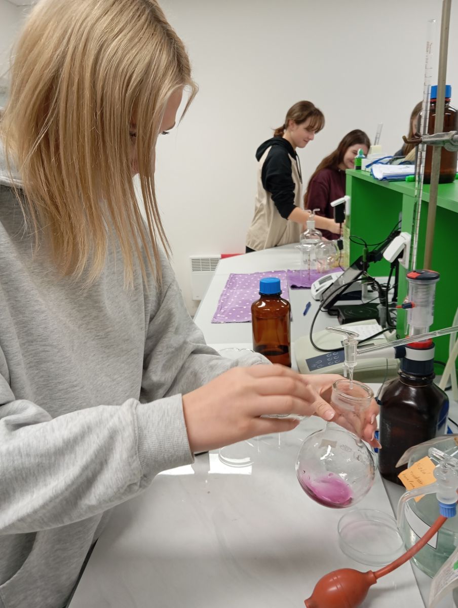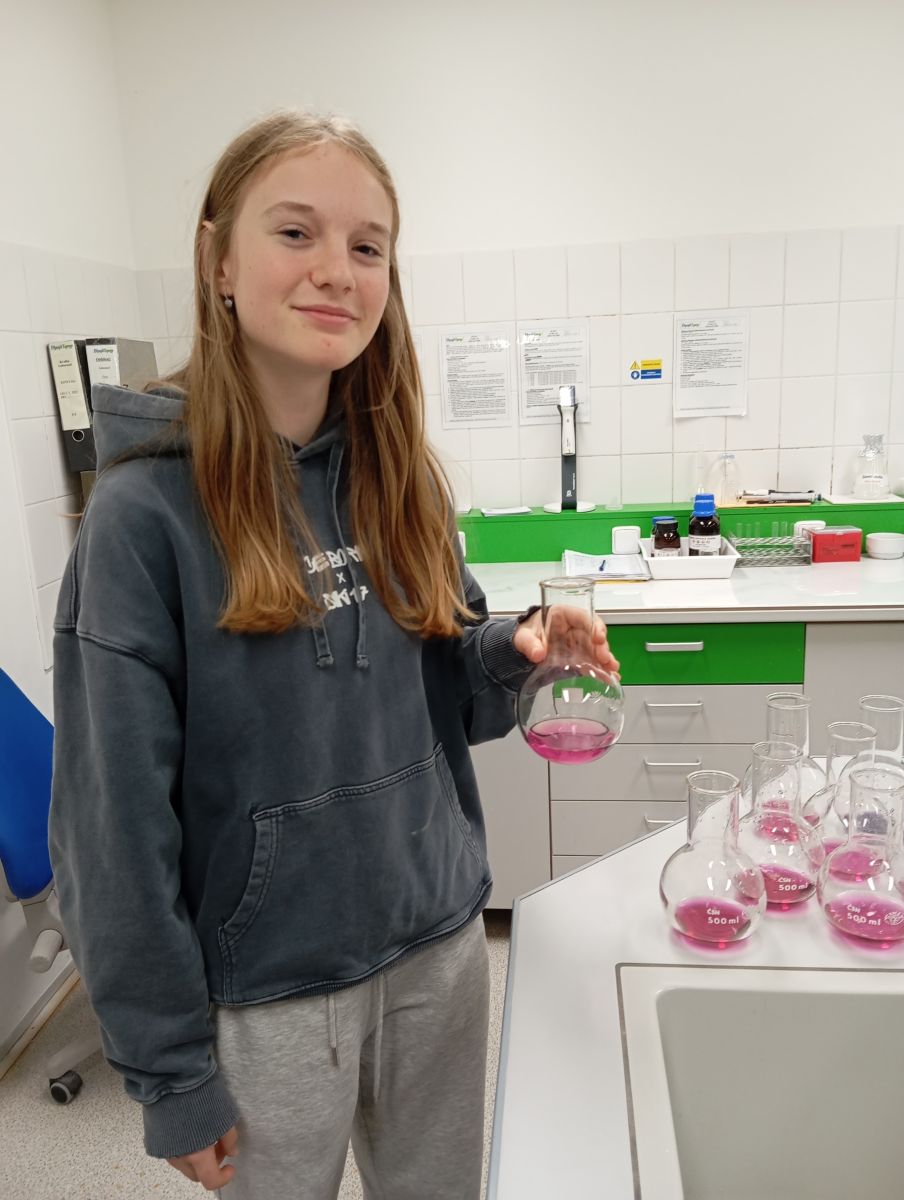 Technologické postupy byly vysvětleny tak, že jim rozuměli i laici. V laboratoři si žáci vyzkoušeli stanovení tvrdosti vody pomocí titrace a paní laborantky jim navíc připravily zajímavý chemický pokus pro zpestření programu. Každý si tak mohl chemii doslova osahat.