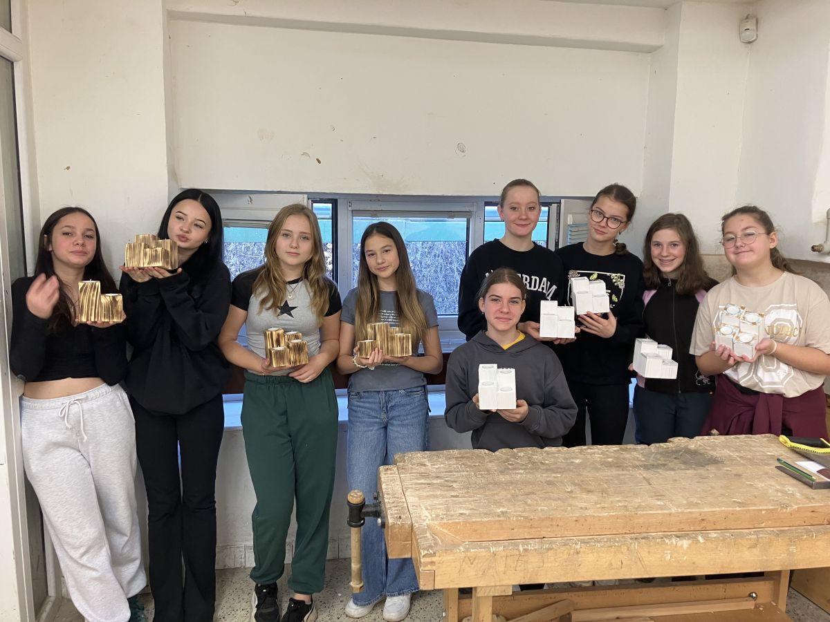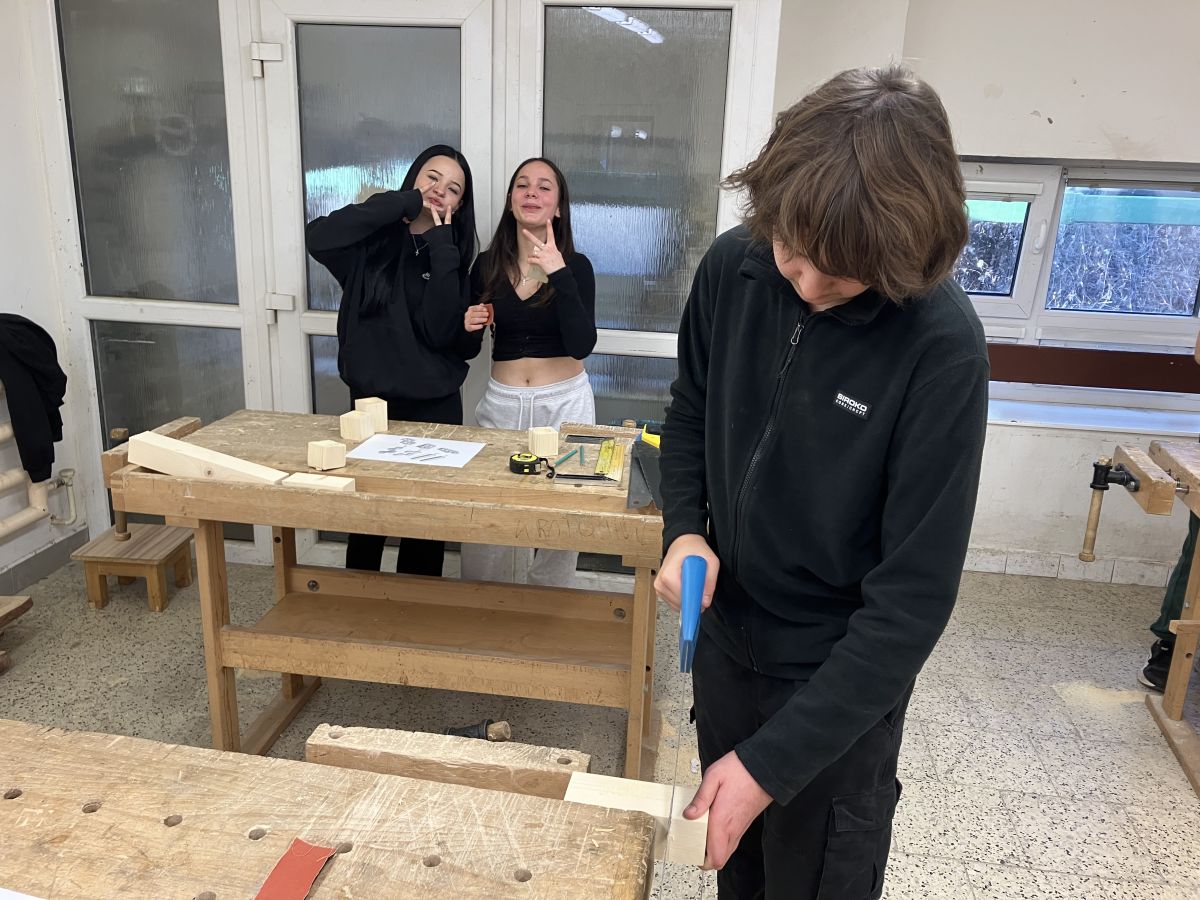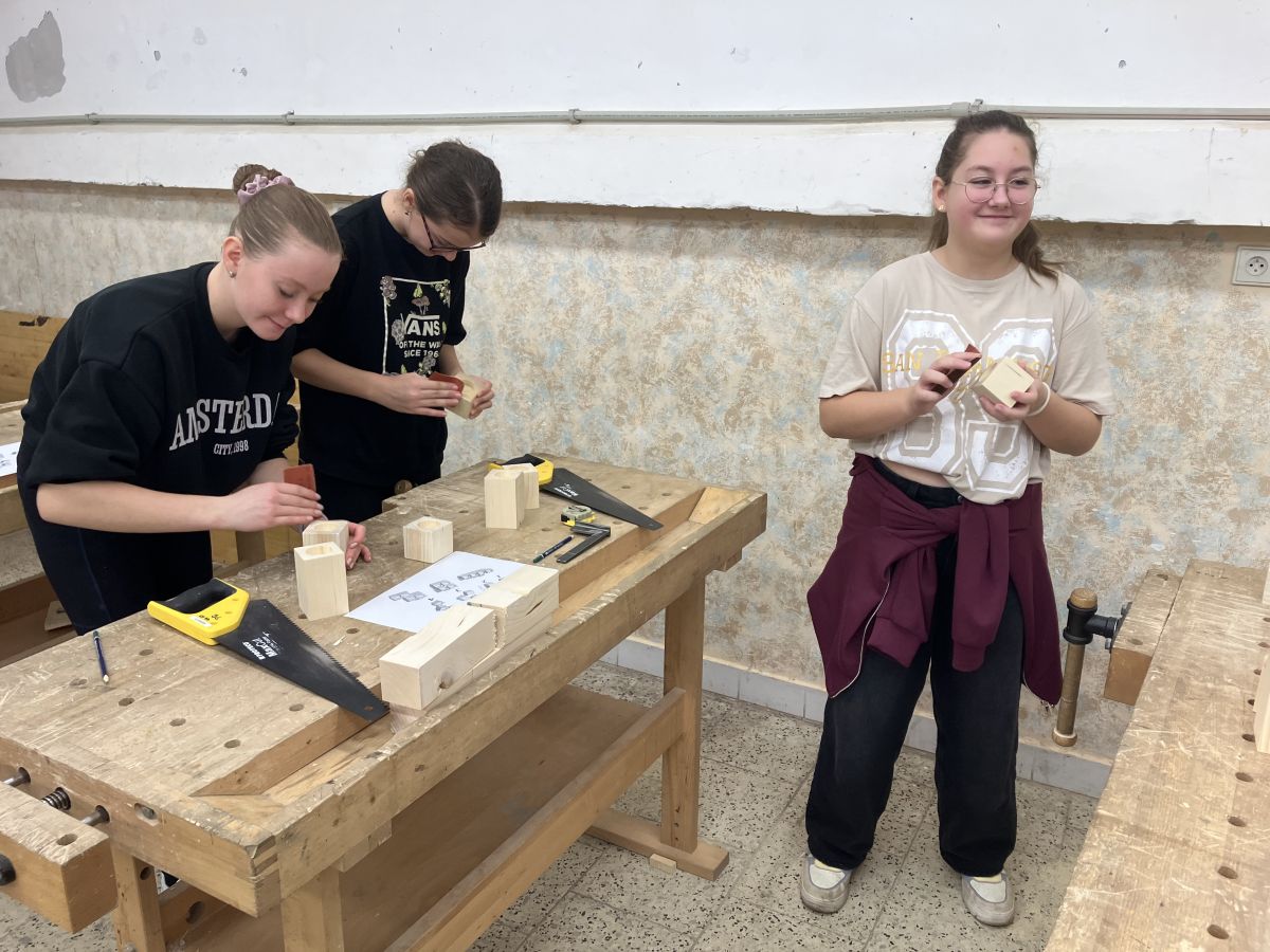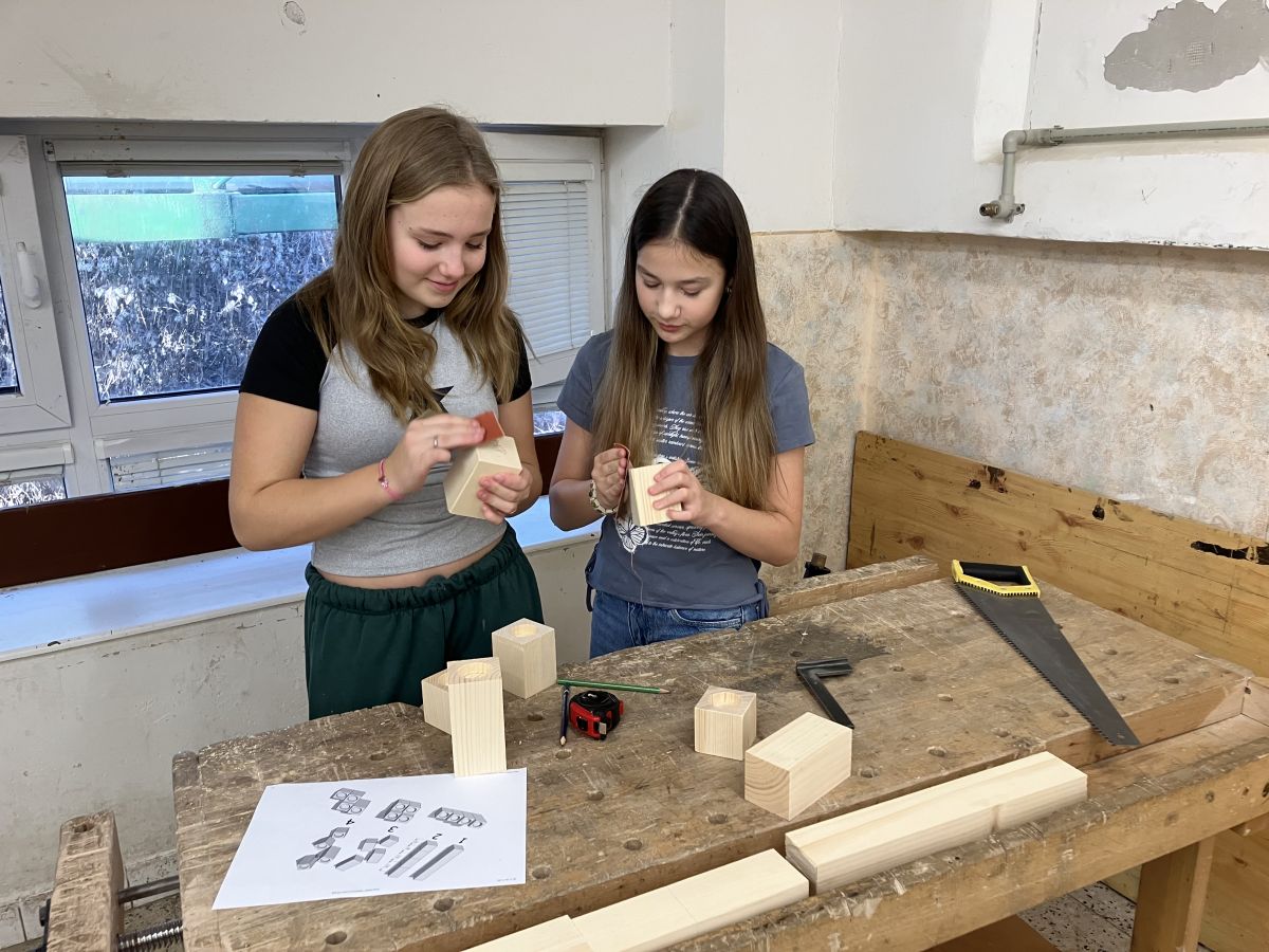 Na programu pro nás bylo vyrábění svícnů na Vánoce. Dostali jsme dřevo, které jsme si naměřili, a podle potřeby uřízli. Uříznutý kousek jsme si obrousili, namalovali nebo opálili a vzniklé hranolky jsme si slepili k sobě. Každý si domů odnesl svůj výrobek. Pan mistr truhlářů nás mile překvapil malou svačinkou.