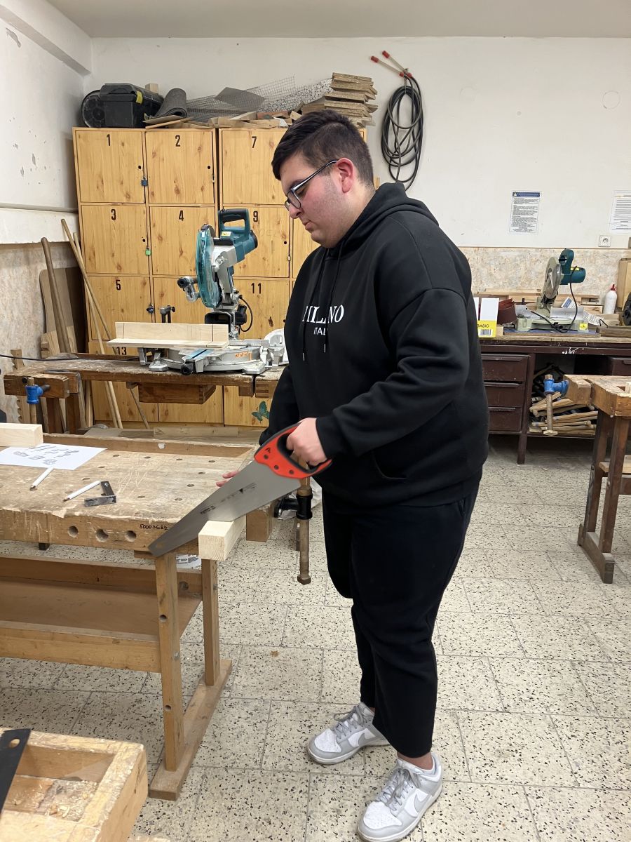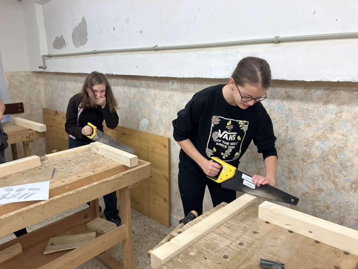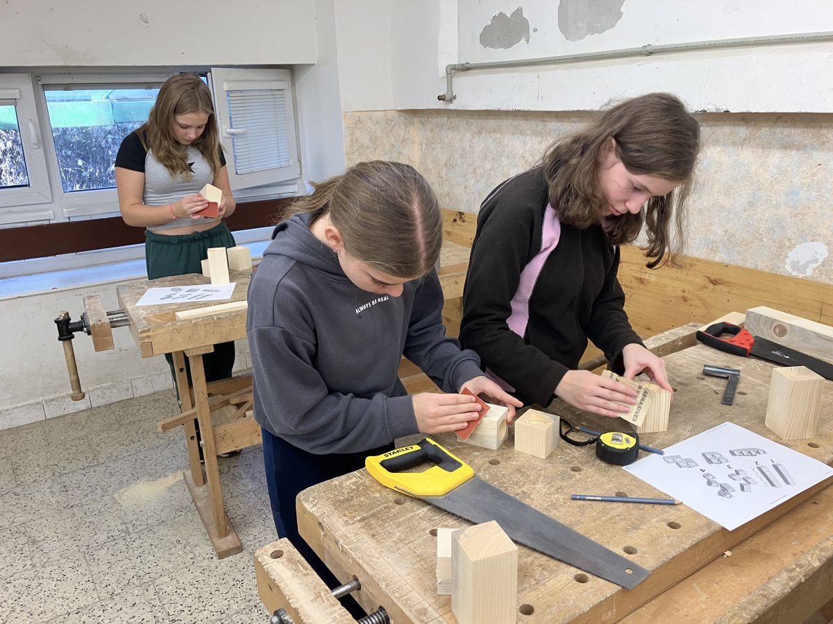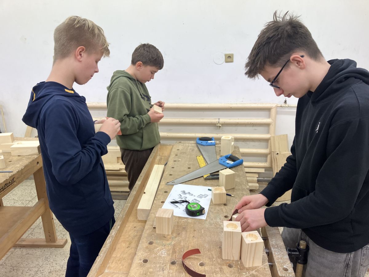 Na programu pro nás bylo vyrábění svícnů na Vánoce. Dostali jsme dřevo, které jsme si naměřili, a podle potřeby uřízli. Uříznutý kousek jsme si obrousili, namalovali nebo opálili a vzniklé hranolky jsme si slepili k sobě. Každý si domů odnesl svůj výrobek. Pan mistr truhlářů nás mile překvapil malou svačinkou.