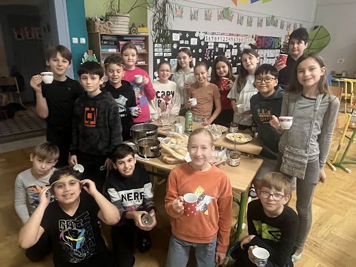 Obě paralelní páté třídy se společně vydaly do „školy čar a kouzel“. Celý večer se nesl v duchu světa Harryho Pottera a na žáky čekala řada zábavných i zapeklitých úkolů, při nichž si vyzkoušeli nejen svou šikovnost a fantazii, ale především schopnost spolupracovat v týmu. Součástí magického programu byla i krátká vycházka do večerního, krásně osvětleného Kolína. Příjemným zpestřením byla zastávka u stánku, kde si všichni pochutnali na párku v rohlíku, který po náročném programu přišel všem vhod.