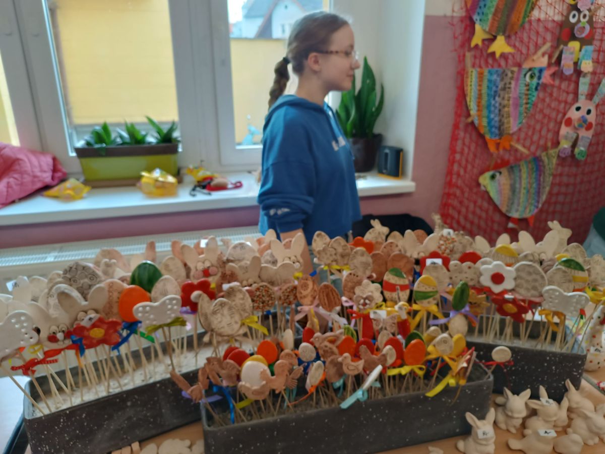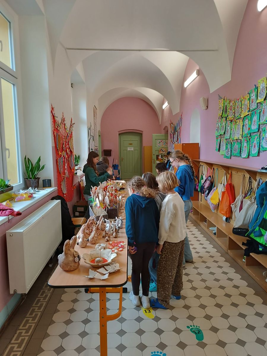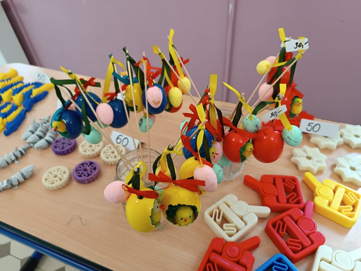 S příchodem jara a blížících se Velikonoc ožila naše škola příjemnou sváteční atmosférou. Předvelikonoční období jsme prožili opravdu aktivně. Vrcholem byl velikonoční prodejní trh, kterému předcházely pečlivé přípravy. Paní vychovatelky, učitelé i žáci se s velkým nasazením zapojili do výroby nejrůznějších dekorací a výrobků. Návštěvníci trhu měli možnost obdivovat a zakoupit si pestrou nabídku výrobků. Při prodeji ochotně pomáhali žáci 2. stupně, kteří tak přispěli k hladkému průběhu akce. Velké poděkování patří všem, kteří se na přípravách podíleli.