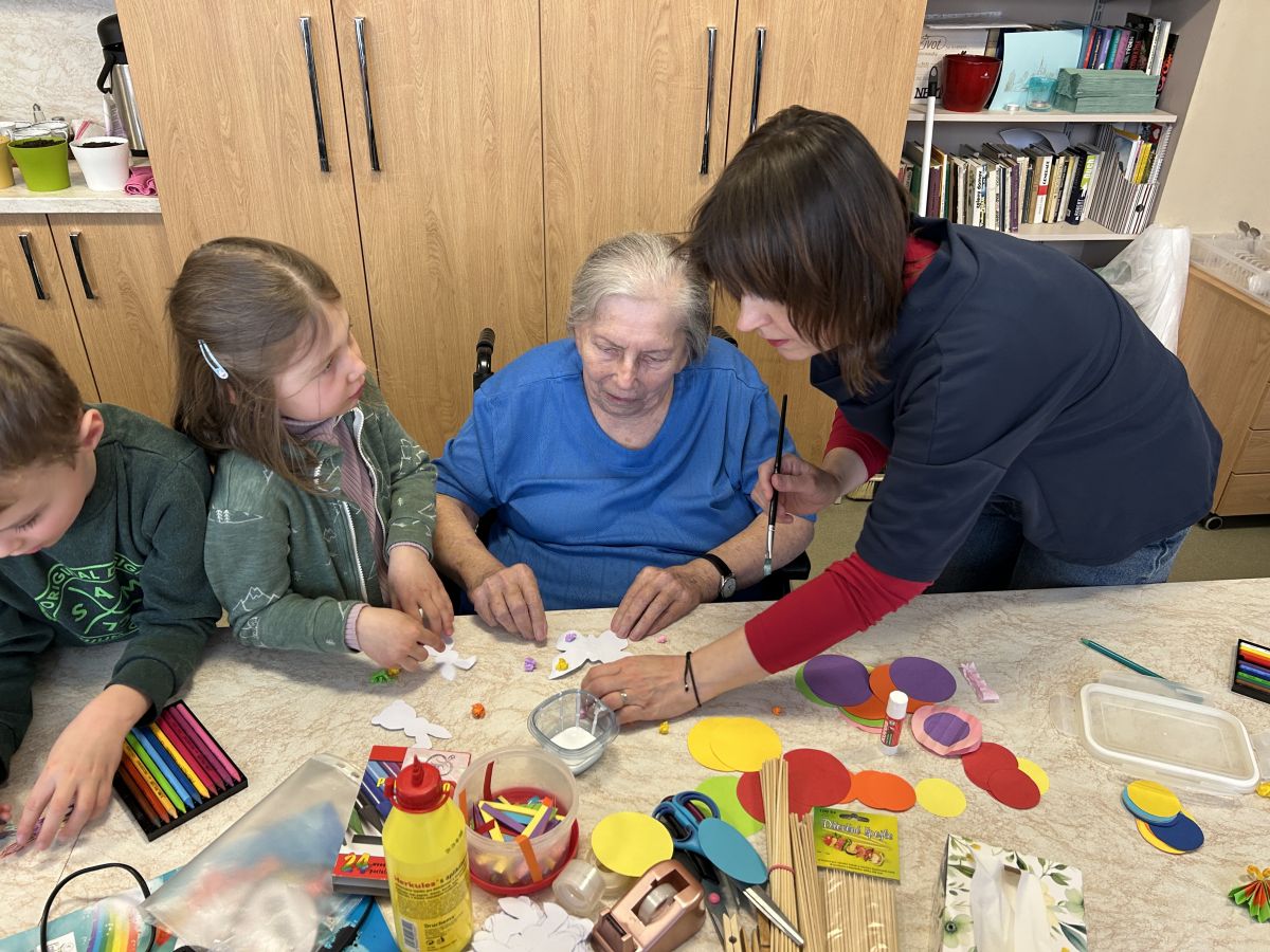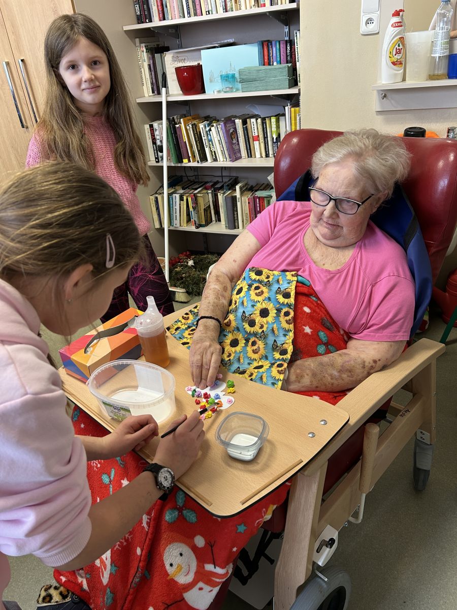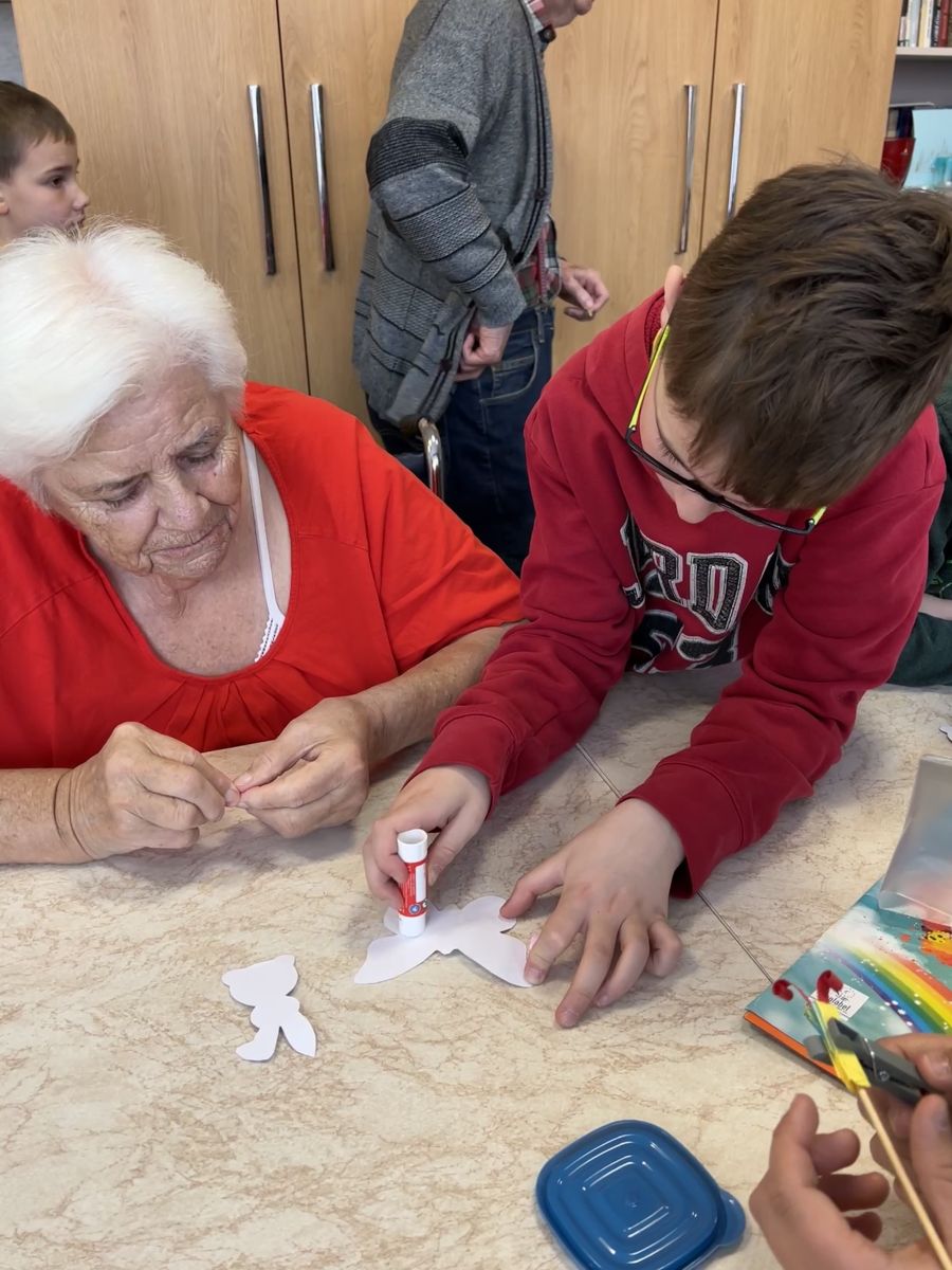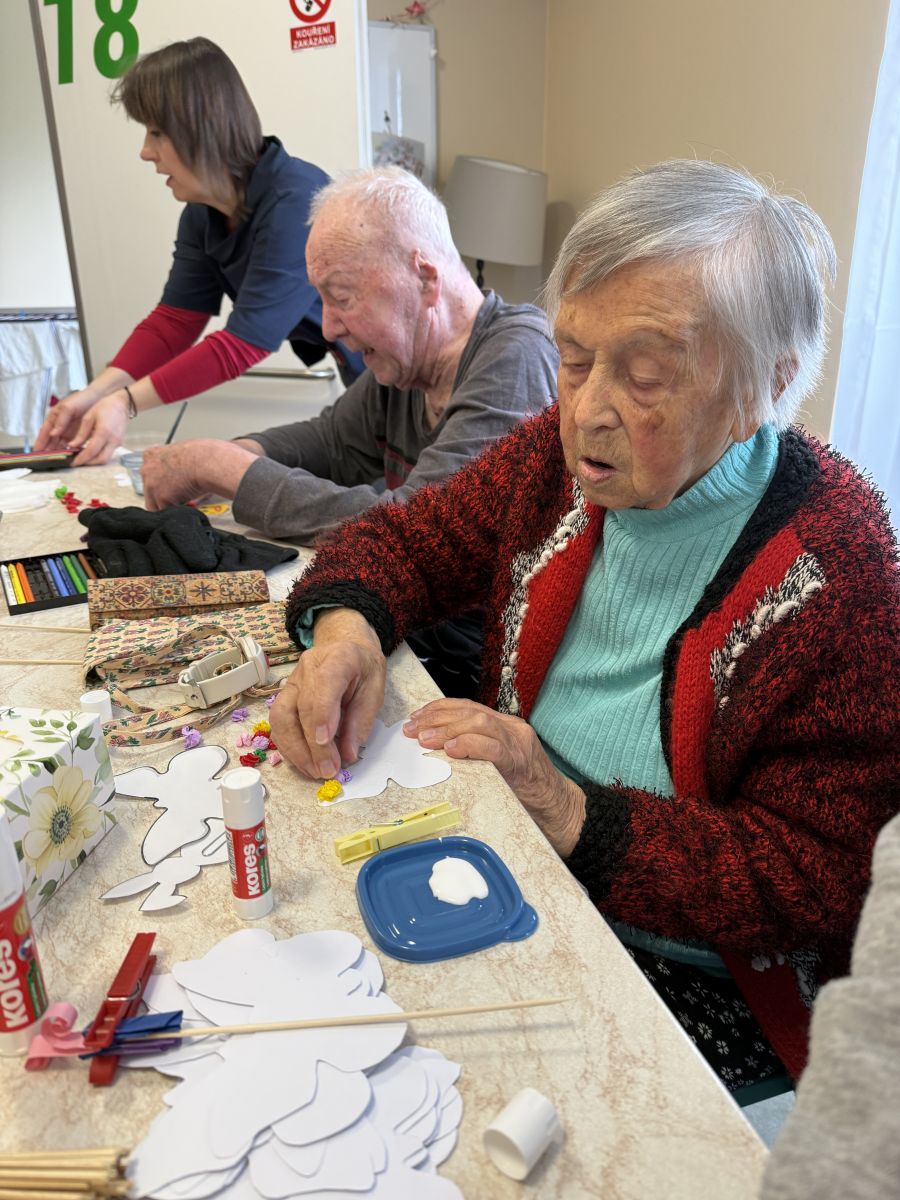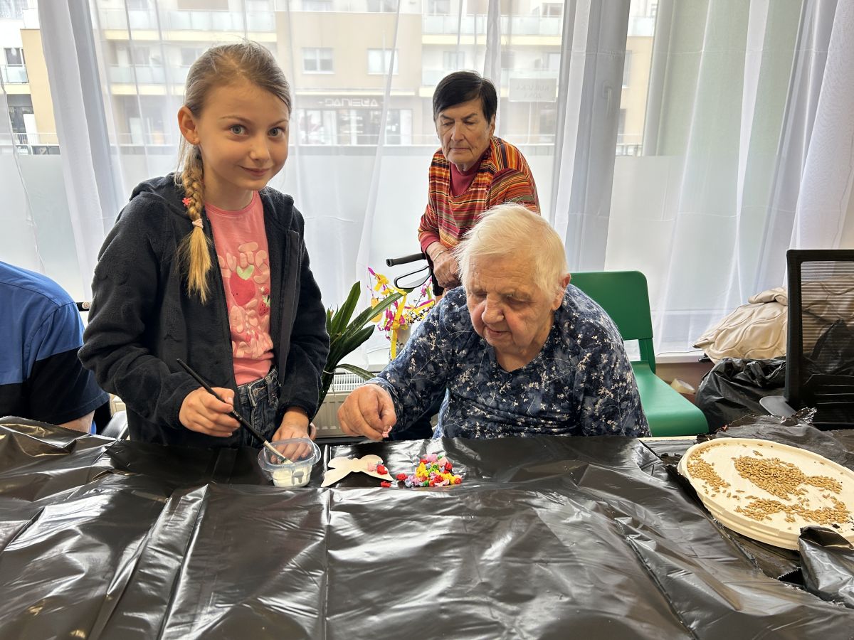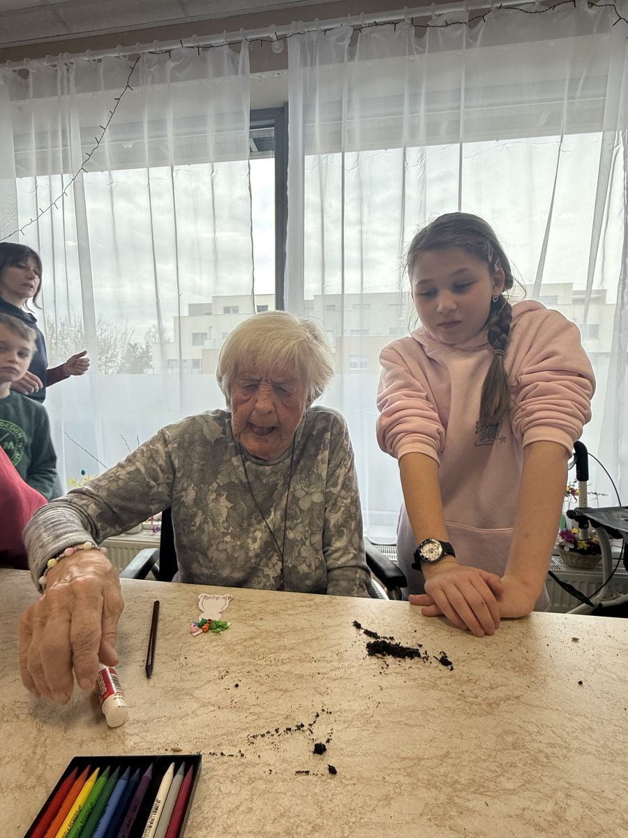 Pokračujeme v mezigeneračním přátelství. Tentokrát jsme se seniory vytvářeli velikonoční osení, barevné zápichy a někteří i vyšlehali babičky pomlázkou. Těšíme se zase na příští akci!