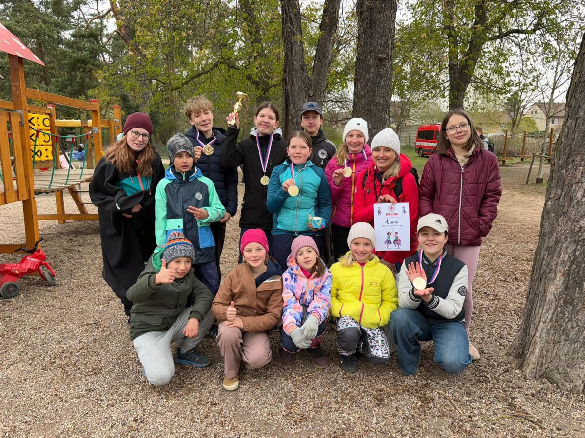 V pátek se žáci našeho zdravotnického kroužku zúčastnili soutěže Mladý zdravotník. V areálu Borek na ně čekala realisticky namaskovaná zranění, se kterými si poradili naprosto profesionálně. Zatímco mladší žáci řešili například ruku probodnutou klackem, starší tým zachraňoval dívku s popálenýma očima a amputovaným prstem po výbuchu.